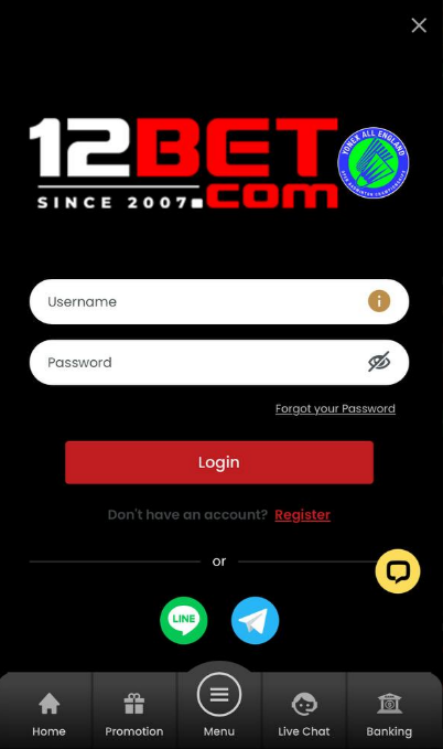 The login form of 12Bet is easily accessible from the homepage. All you have to do is input the username, password, and validation code. After that, click the Login button.