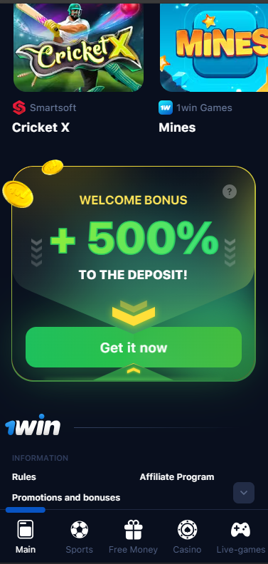 - Go to the official website of 1win;
