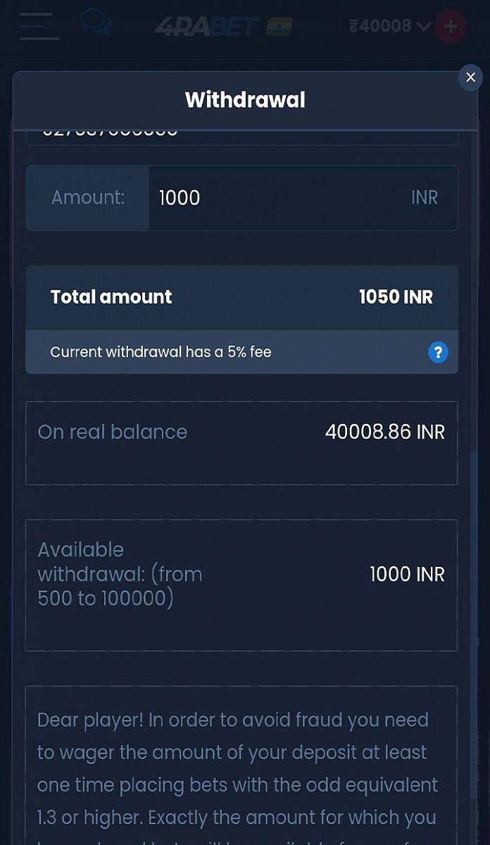 4RABET has convenient withdrawal using multiple secure withdrawal options. It counts as an easy cash-out for the winners. The 4RABET withdrawal limit stands on a different margin, typically starting from ₹300. Take a close look at some of the best withdrawal options available.