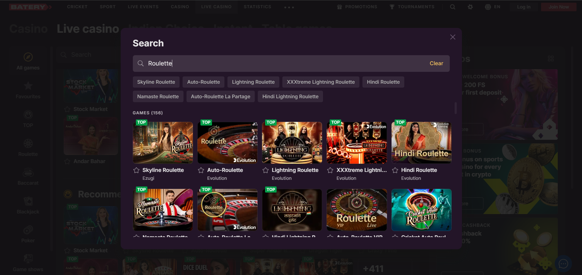 Batery bet has an amazing casino section that is different from the sportsbook. Players can find all sorts of casino games in the casino of Batery bet that they expect from the top bookmakers in India. Moreover, Batery Casino also provides generous rewards for the listed games. Also, Batery features a live casino for the players.