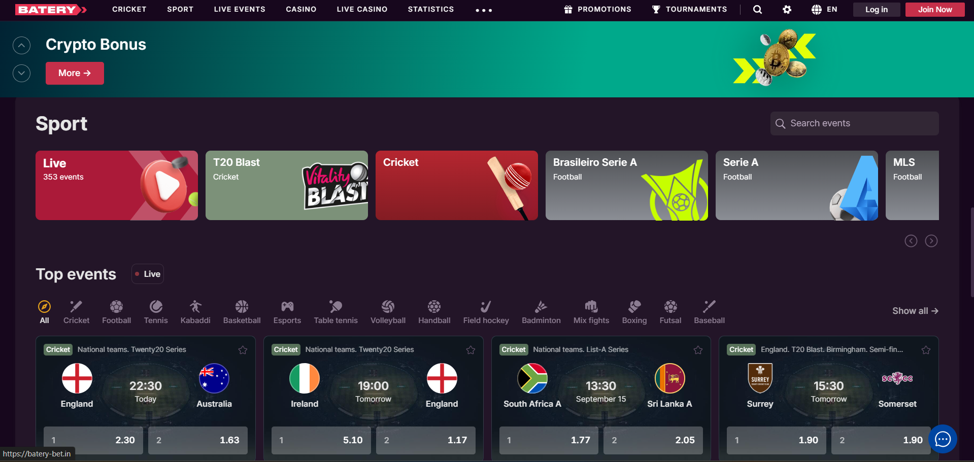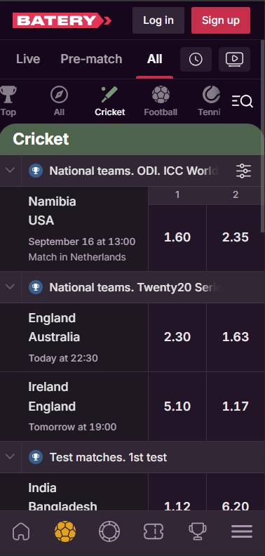 Batery is a reputable sportsbook in India that offers gambling features to punters in India. From sportsbooks to casinos, Batery bet in India offers a comprehensive bookmaker experience to punters. The bookmaker also features user-friendly payment methods for the customers.