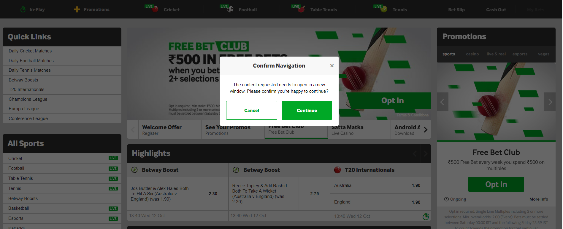 Betway Free Bet in India