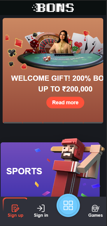 The BONS sports betting application has an extensive sportsbook. Players can find a host of sports events for betting. There are different events like cricket, football, tennis, and others where the players can test their luck and win amazing rewards.