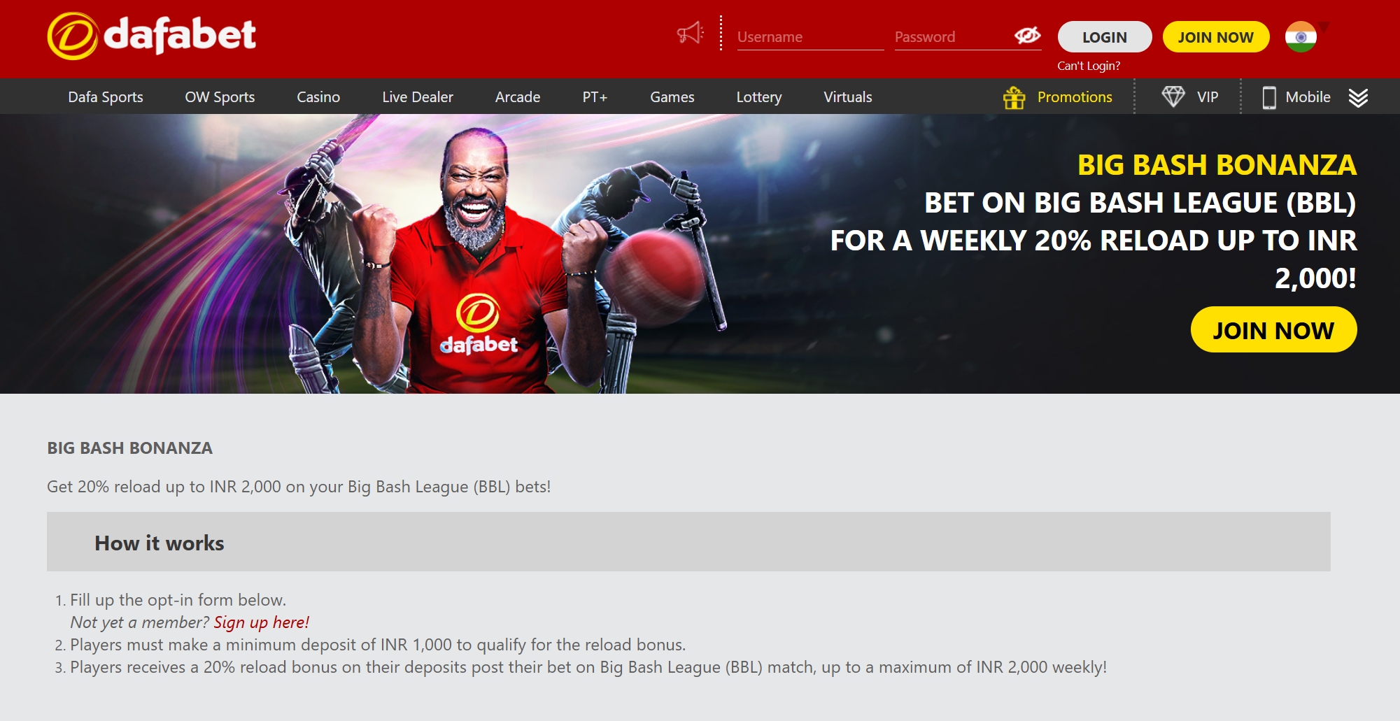 With the 78th NBA season waxing strong, you can be a part of Dafabet's offer on the NBA. As you use their live streaming feature and bet on NBA matches, you can receive a 10% cashback up to INR 20000 weekly. Your bets must be on odds of 1,50 and make sure you have opted in for this offer. Note that the bonus is tied to 1x rollover requirement before you can withdraw your winnings.