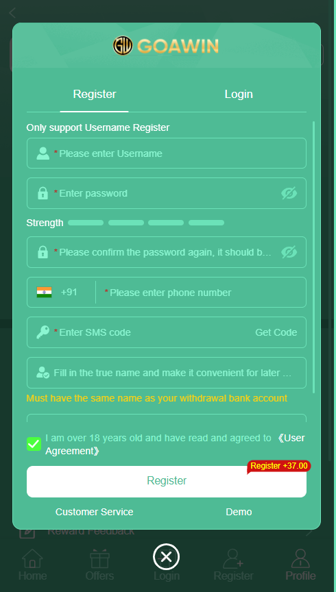 Players can also claim an app download bonus on the mobile gambling site. There are different tiers for the app download bonus. As you complete every level, you get a part of the reward. The total money you can win is up to 71 INR. This bonus is subject to a 3x wagering requirement that must be fulfilled to withdraw the funds from your account wallet on Goawin.