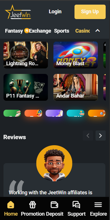 Besides the welcome bonus, the players can access exchange bonuses, reload bonuses, and even cashback rebates for the losses they incurred on the games. The bookmaker also has a loyalty program for the loyal users of the sportsbook app. Jeetwin sportsbook never falls short of offering bonus opportunities to the customers. Once you sign up on the sportsbook, you will be eligible for the bonuses.