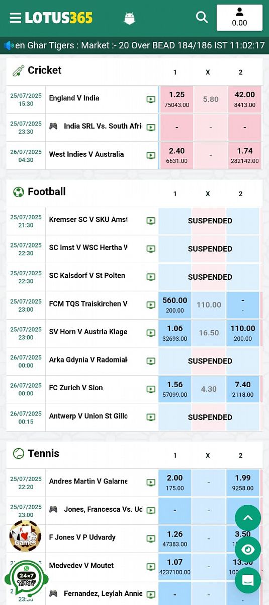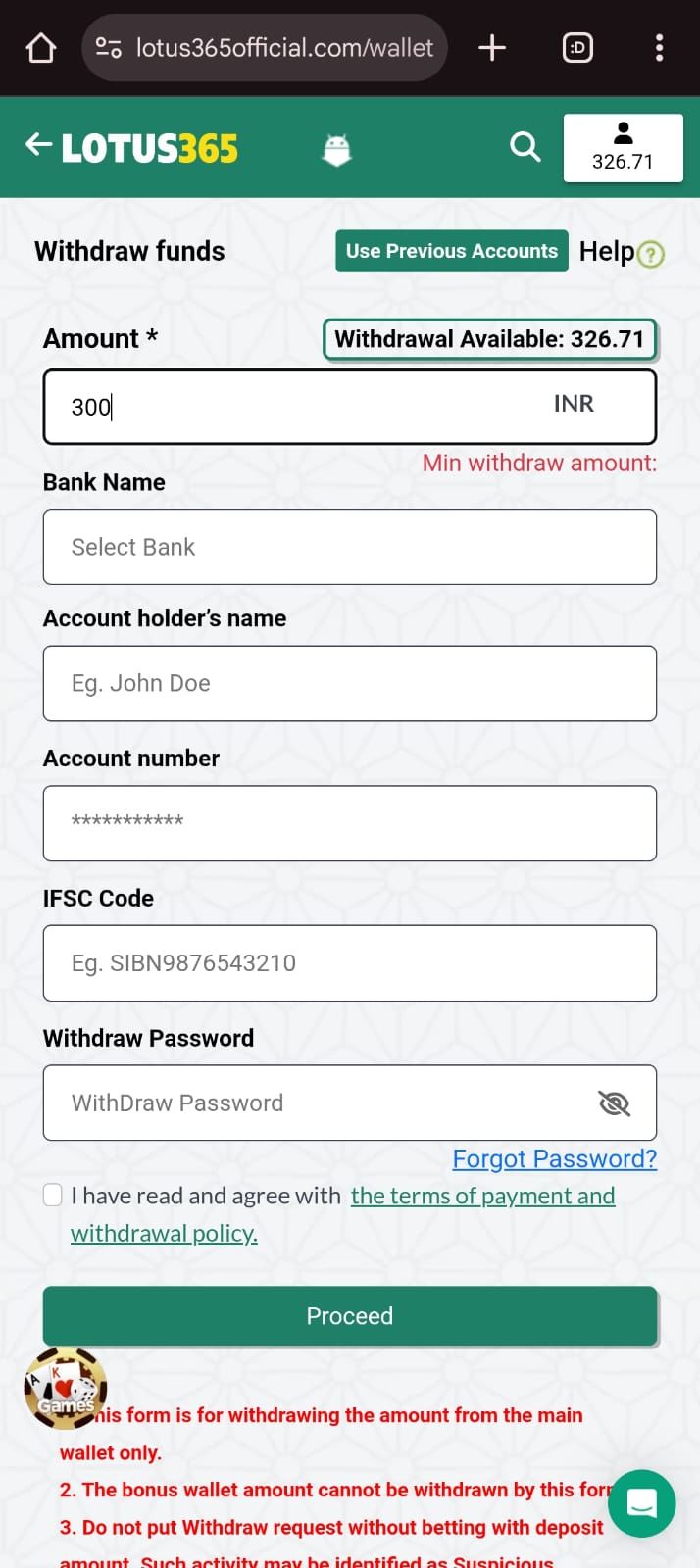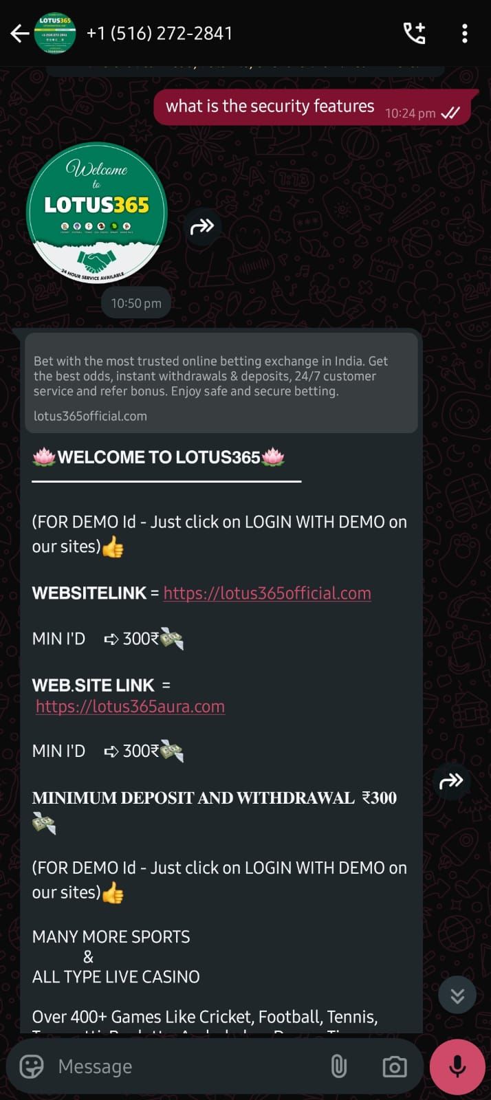 Customer Support: While there is no direct in-build customer support available, clicking on the 24/7 help feature will redirect you to WhatsApp. I did not particularly like this feature, because if I am taking the effort to download an app, I’d want customer care to be accessible straightaway on the app itself. However, they were not very helpful: I messaged them and wanted to know about the security features on Lotus365, but instead I was asked to make a minimum deposit of Rs 300, which is not what I wanted to know.