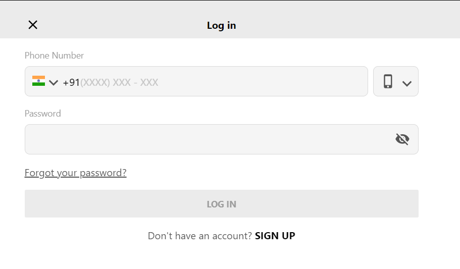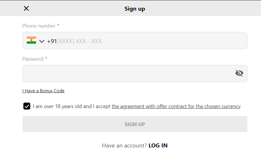 You will be automatically taken to the registration page. Here you need to enter your mobile number and password and acknowledge that you are over eighteen years of age. Once all the details are accurately filled in, click on sign up to register your account on Parimatch India.