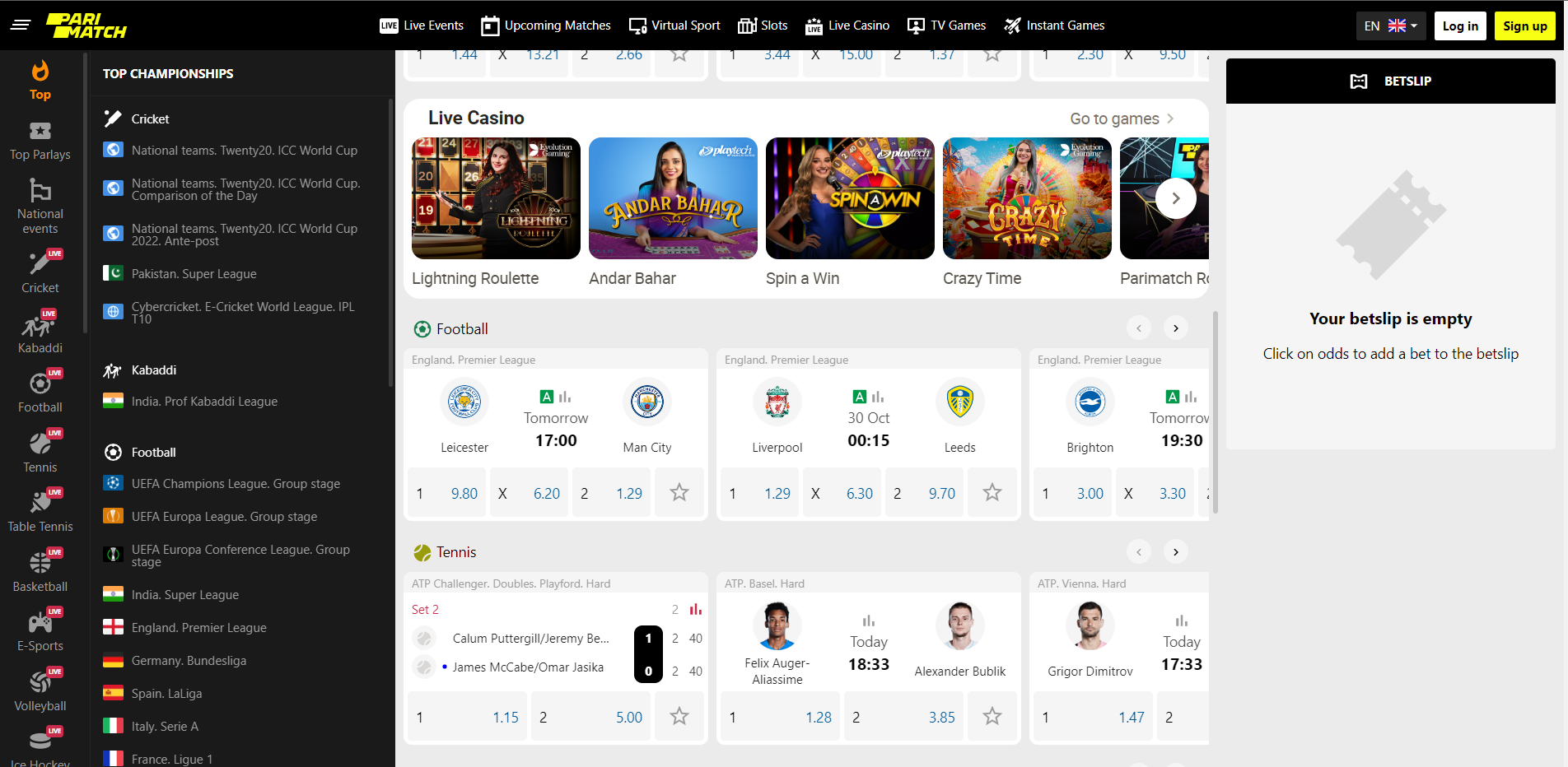 Indian players with Parimatch can place bets on live match events courtesy of the live betting option on the sportsbook. Players can place bets on soccer, cricket, handball, basketball, and many more sports betting events.
