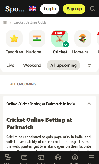 The Parimatch app has a dedicated in-play wagering section where punters can wager on events happening in real-time in most of the sports betting options that the sportsbook provides. To get the live betting section, simply click on the Sports button at the bottom of the page and you will be able to view all the live wagers at the sportsbook. While some bookies prefer overly complex designs, Parimatch chose to stay with what is most well-known, which is simplicity. The resulting interface on the Parimatch app makes finding ongoing and upcoming live games as well as wagering quite simpler. Then, sports categories are arranged in a practical sidebar menu, and the schedule is displayed in the center column.