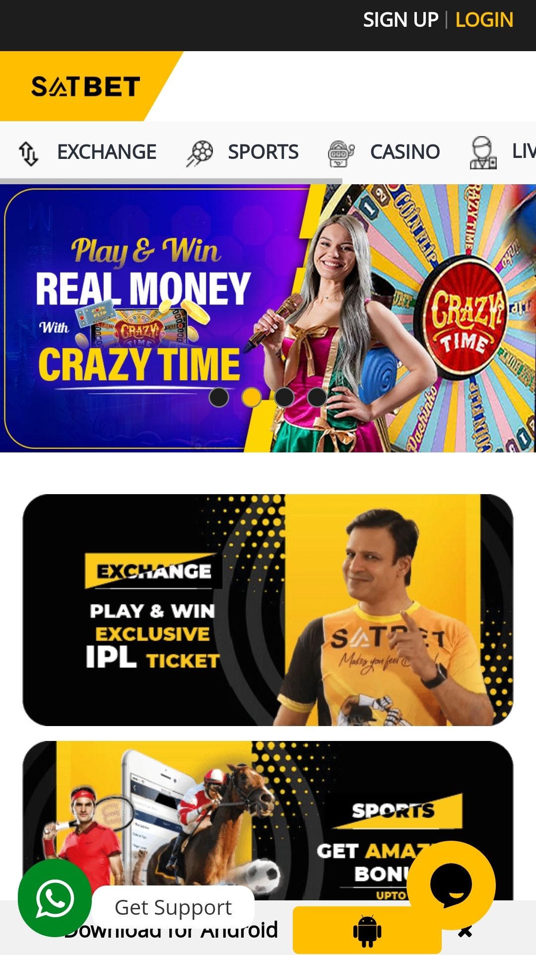 SatBet is a popular betting exchange and sportsbook in India. Since 2020, it offers many great playing experiences on Betexchange, Aviator, Casinos, Vitual, Live Streaming, etc. Satbet is licensed in Curacao and prioritizes responsible gambling for its players. The sportsbook supports payment via cryptocurrency, UPI, Google Pay, PhonePe, IMPS, etc. With 24/7 support and live chat, Satbet enables its players to receive swift assistance anytime. SatBet has an advanced mobile browser that is convenient and easy to use, as well as a smooth-operating Android app for its users.They can also take advantage of attractive bonuses, which include Satbet IPL Bonus, Real Cash Bonus, Sports Bonus, etc. Sign up now on Satbet and get the 300% Deposit Bonus of up to INR 10,000.