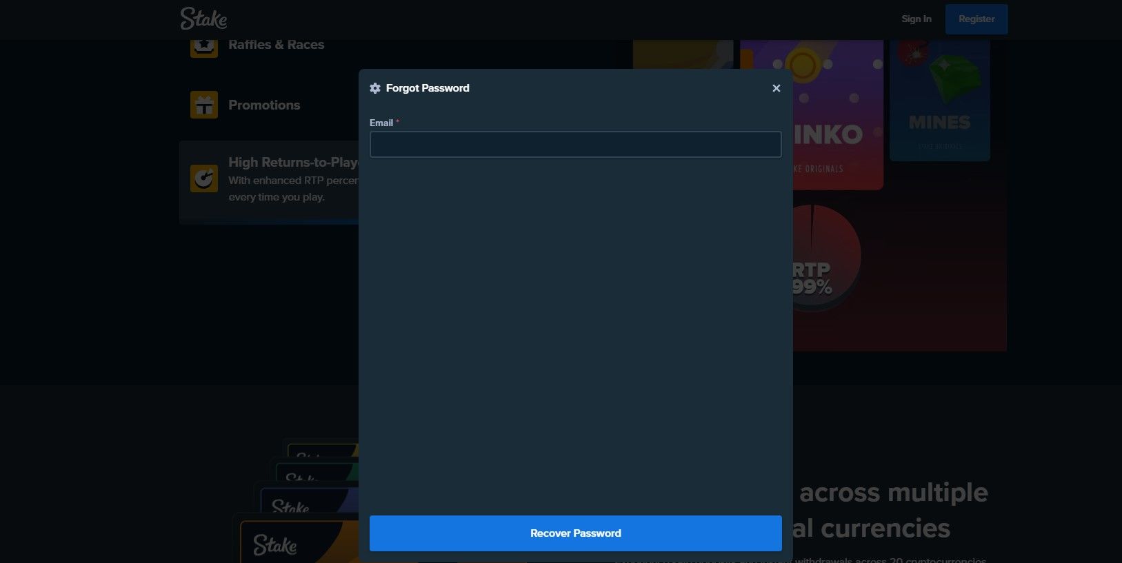 Players might forget the password for their Stake account. Thus, this can prevent players from logging in to their Stake account. But there is nothing to worry about. Players can easily reset their password using the “forgot password” option. They might have to enter their email or phone and receive a link. Select the link and follow the steps to reset the password. Once the password has been reset, they can use the new password to log in to their Stake account.