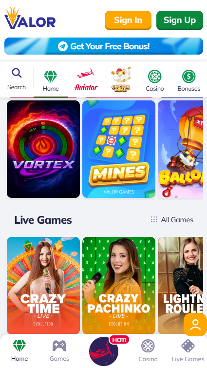 The Valor Bet mobile version features an extensive library of games. Whether it is casino, crash, or instant games, the live dealer casino app is well-designed to enhance the casino gaming experience of the players. It features some of the best casino games like poker, blackjack, roulette, and many more.