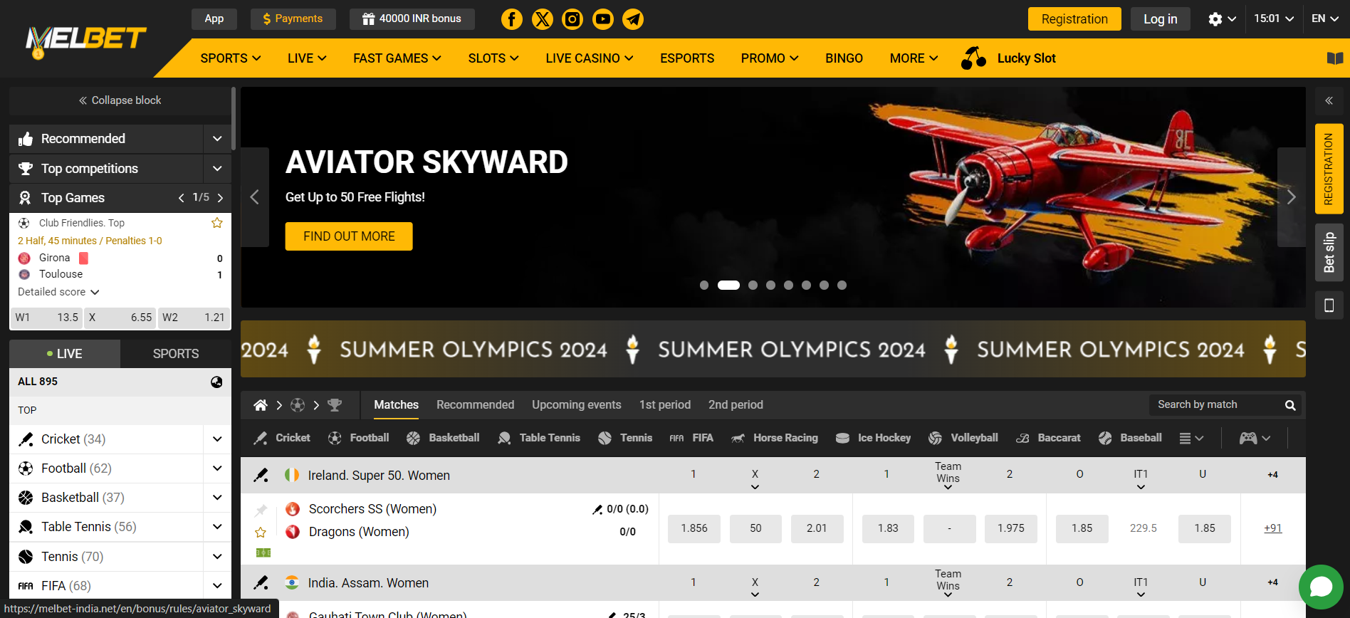 | Melbet | 155000 INR + 290 FS | 40x | 7 Days |
