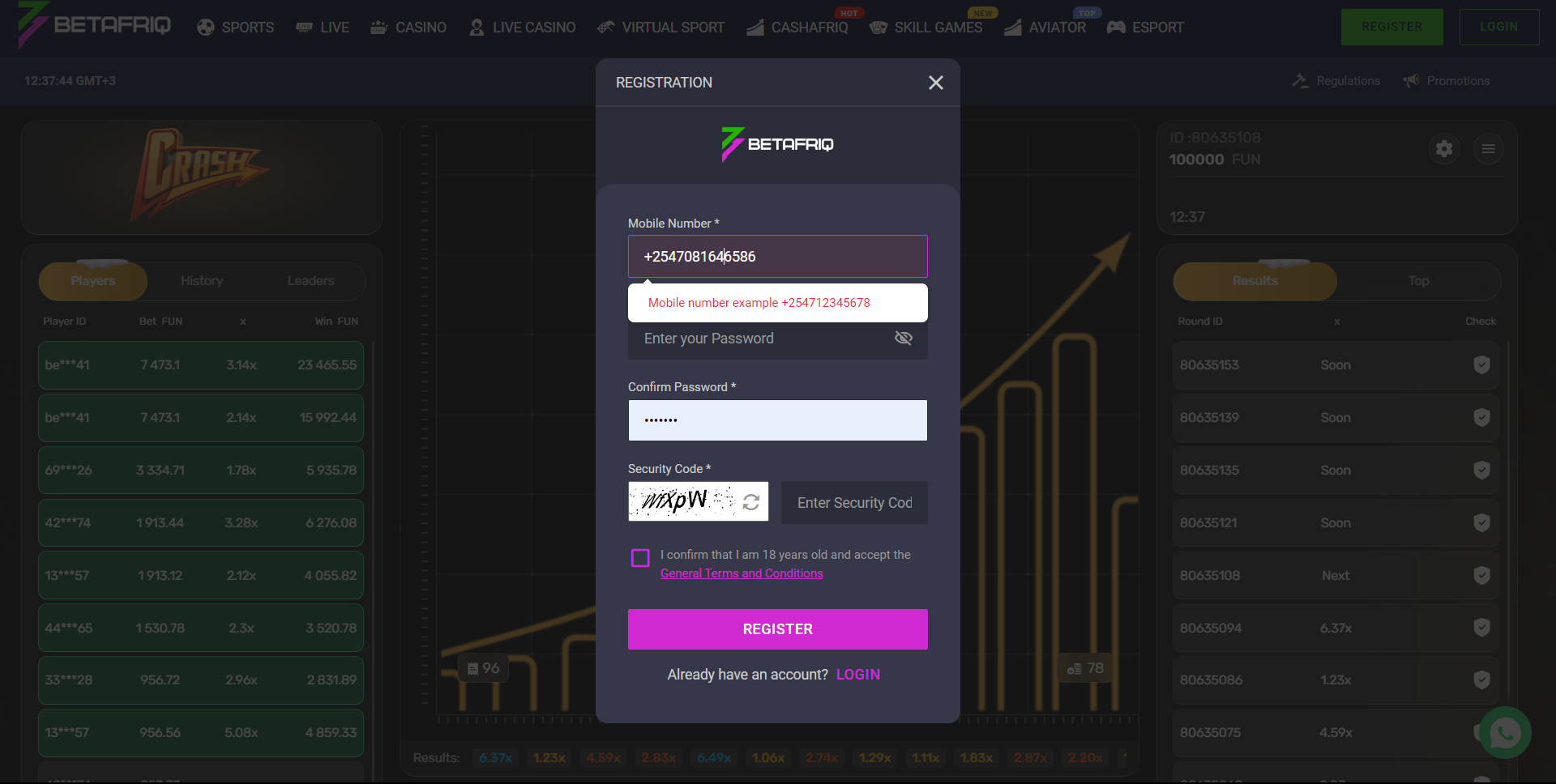 BetAfriq Sign-Up Process