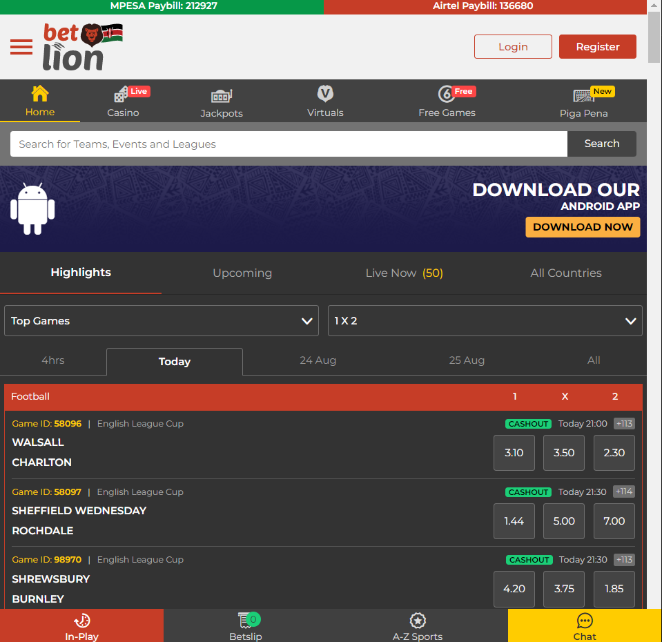 African punters of Kenyan origin have the opportunity to place bets on sports events that are happening live. They can use the live betting interface provided by Betlion Kenya. Unlike pre-match betting, where odds are fixed, the odds for live betting are shifting constantly. As long as you keep a tab on the event as it happens, you'll have twice as much entertainment. You may also be interested in live streaming, but the sportsbook does not offer it currently. Once a live streaming feature is added to the sportsbook, we'll be quick to inform you.