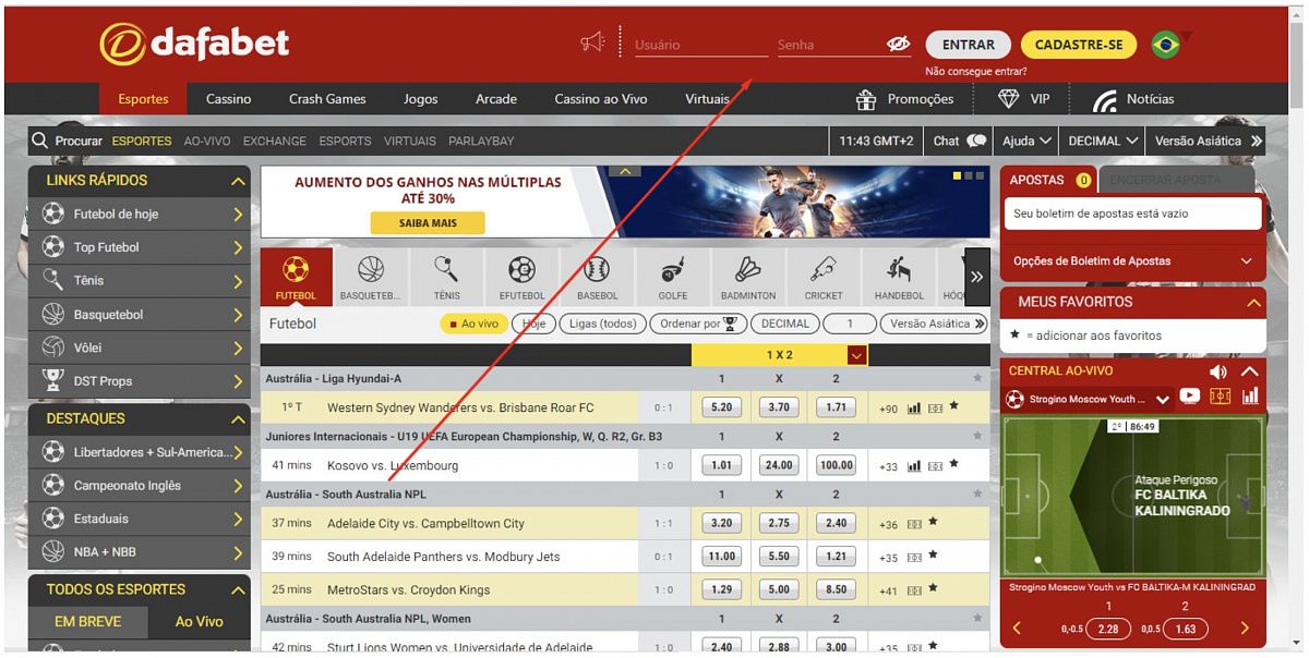 - Acessar ao site www.dafabet.com e clicar em “Cadastre-se”;