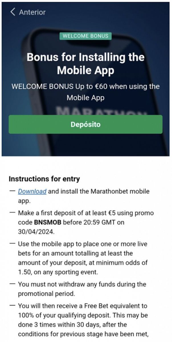 Bónus da Aplicação Mobile da Marathonbet