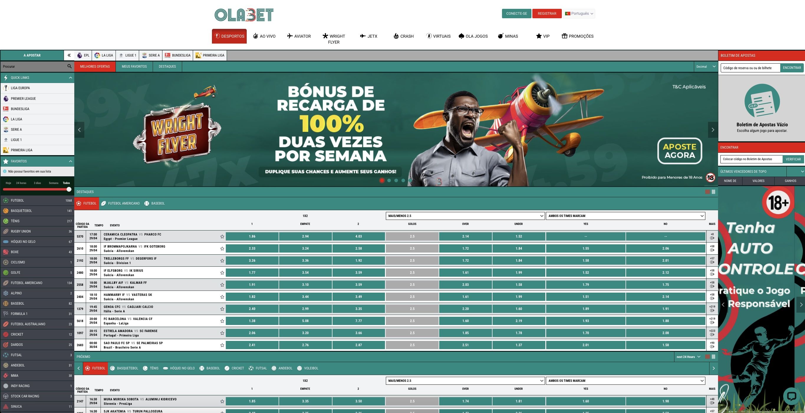 Apostas ao Vivo e Transmissão em direto da Olabet