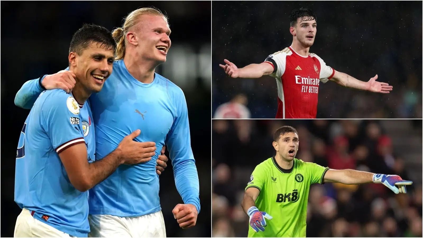 Midfielders: Rodri (Manchester City), Declan Rice (Arsenal), Martin Odegaard (Arsenal).