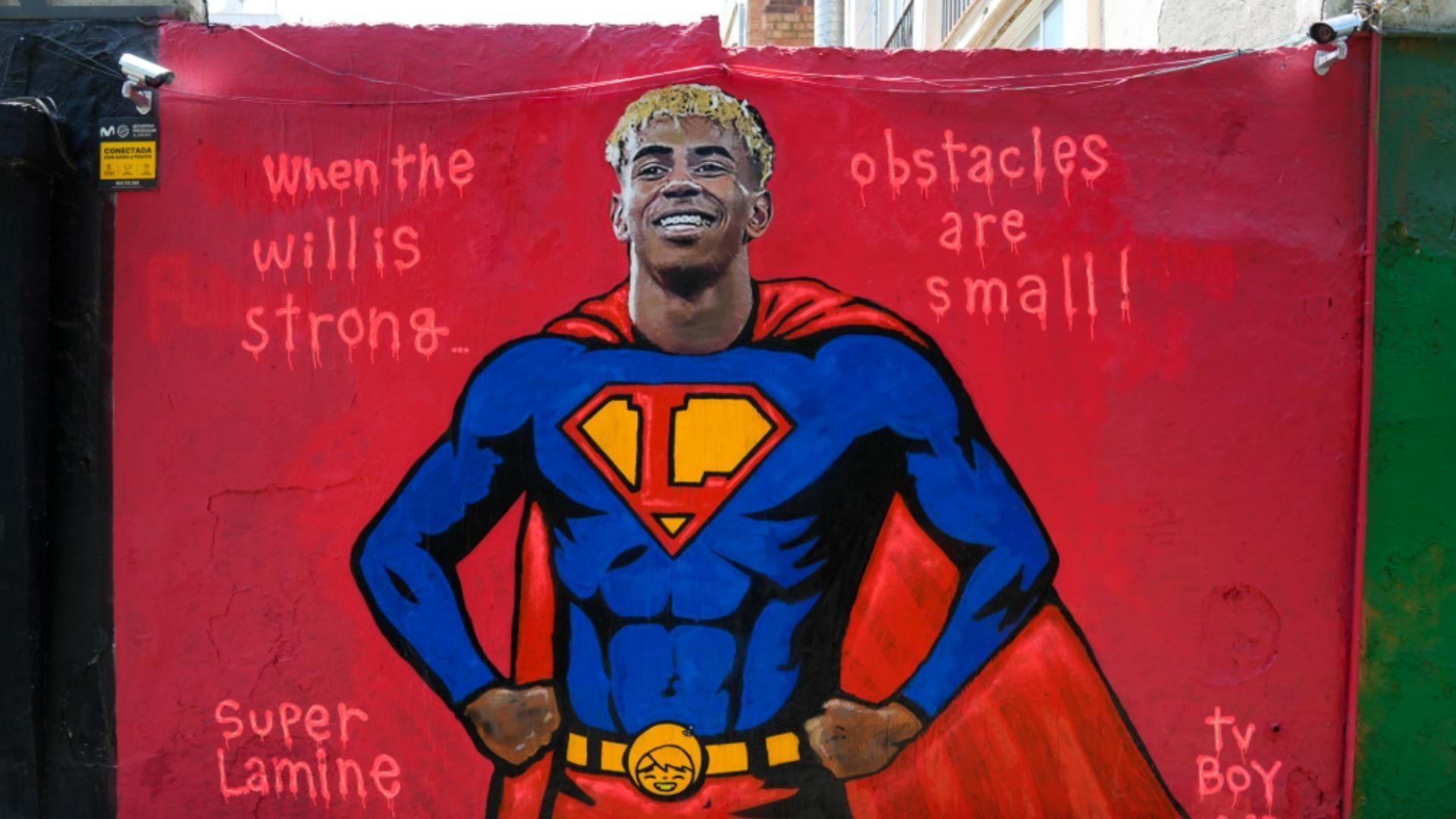 A street artist has created a mural in a neighborhood of Barcelona to honor winger Lamine Yamal of FC Barcelona as he turns 18 on July 13. The footballer is depicted as Superman, the beloved comic book hero.