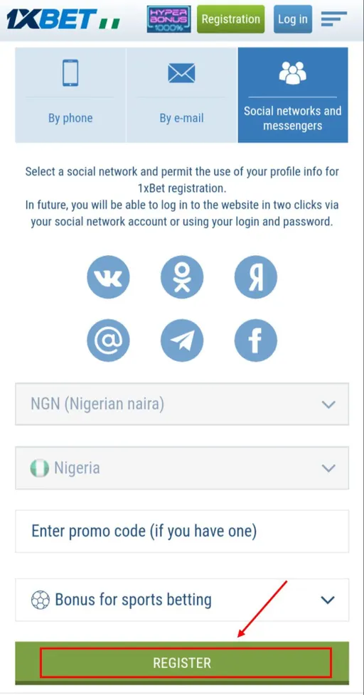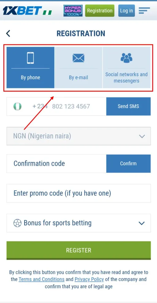 - Choose your preferred option of registration i.e. phone number, email address or social networks/messengers;