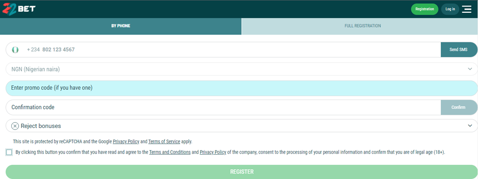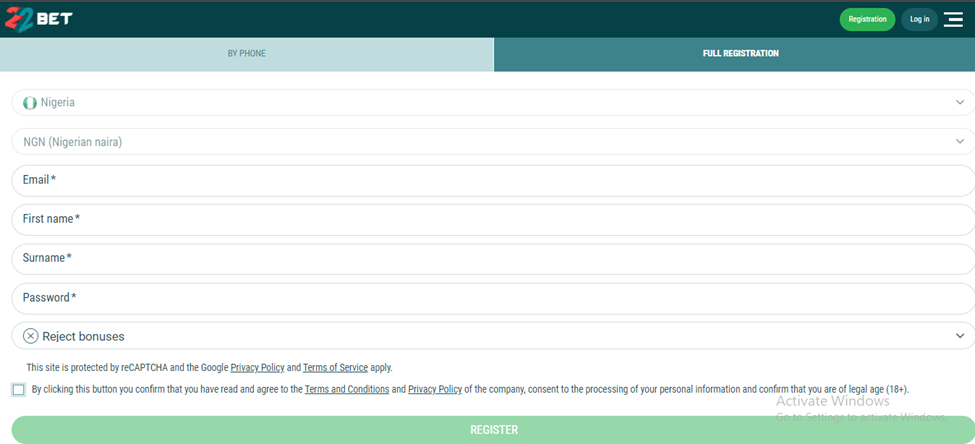 This 22Bet Nigeria review also instructs players on how to register and get a Bet22 account. You will be amazed to know that creating an account on 22bet Nigeria is easy. Visit the site and click the registration button. You can choose to create an account with your phone number or choose the full registration process. Follow the order in the thread for more on the 22bet Nigeria sign-up procedure: