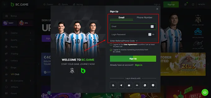 The sign-up process comes with zero complexities. Your email, phone number and password carries all that's needed to own an account. For me, that's as basic as it should be for a start. I don't see any reason for bottlenecks and multiple documentation when a player hasn’t even played. Bc.Game completely scales this hurdle; it’s extra easy and speedy for customers.
