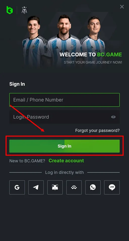 - Tap SIGN IN to log into your Bc.Game app account.