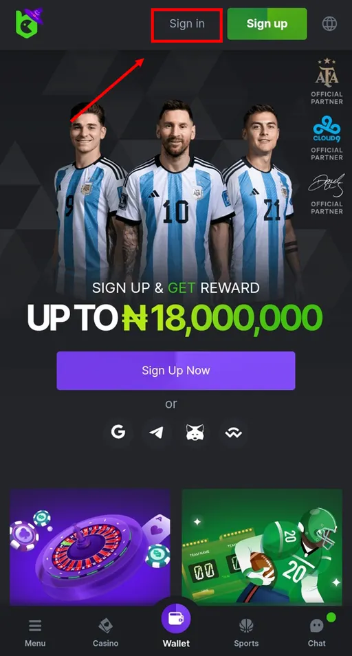 - With your mobile, go to Bc.Game website and tap SIGN IN;