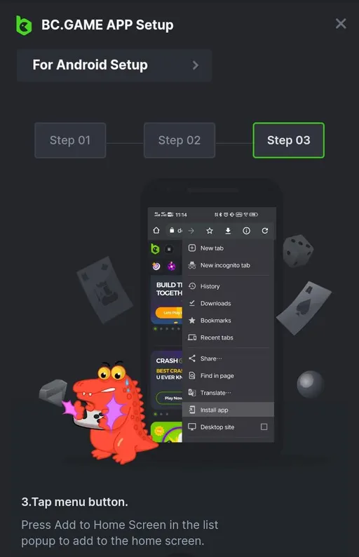What interests me is the way Android phones work with the Chrome browser on certain websites like Bc.Game. When I visited the site via mobile, in a few seconds I was greeted with a bubble above the homepage with the message INSTALL app. I tapped it and in a few seconds Bc.Game was on my Android home screen.