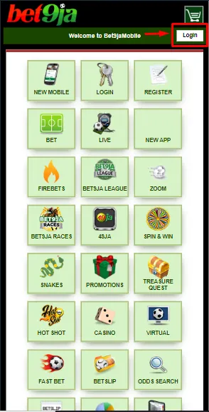 - Click on the old Bet9ja login button sandwiched between the new mobile and register button in the top row;