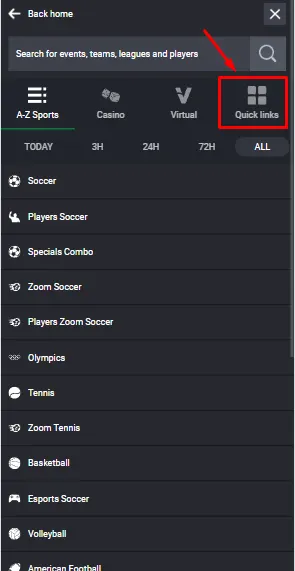 - Tape on this button to get into a new page where you will find “Quick Links” amongst other feature;