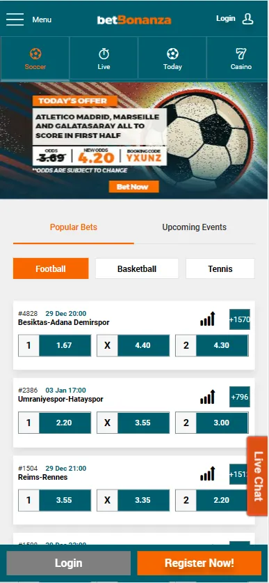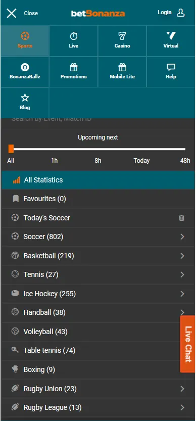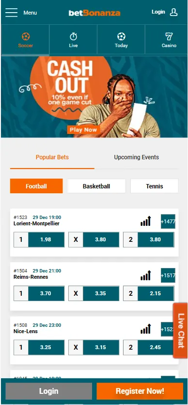 You may place wagers on live events that are currently going on courtesy to BetBonaza's fantastic in-play betting option. After logging into your account, you may use the in-play betting option, which provides a huge selection of wagers and covers a number of different sporting events every day. This bookmaker offers a variety of sports for live betting. Sports including football, baseball, basketball, volleyball, rugby and others are popular live gambling events on BetBonanza.