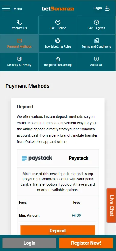 Bet Bonanza has made it simple for clients to perform transactions as a comprehensive sportsbook. The bookmaker has in place convenient and reliable payments method options There are various alternatives for both depositing and withdrawing funds. Transactions between your BetBonaza account and the respective payment methods are very quick, and with this, gamblers can enjoy their experience with betting.