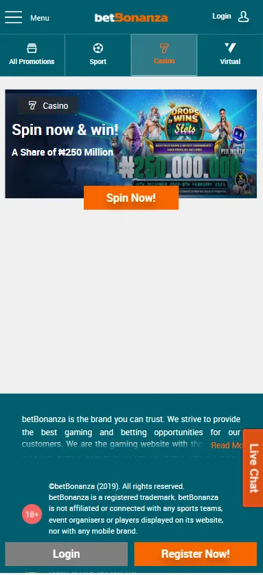 Having been in the industry for a decent time, we definitely give the sportsbook a thumbs up for its cutting-edge offerings, as there is no doubt that BetBonaza is an outstanding betting platform for Nigerians. In the sports section, there is a great variety of betting markets. Furthermore, the live betting and adaptive web design have consistently been among the top features on any online betting site.