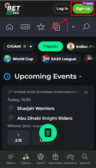 - Visit BetOnRed website and tap SIGN UP;