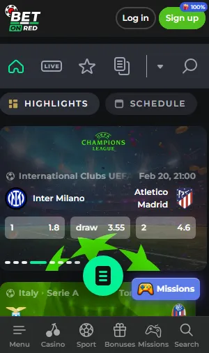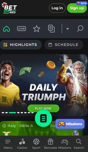 - Visit the BetOnRed official website from your browser, and click SIGN UP;