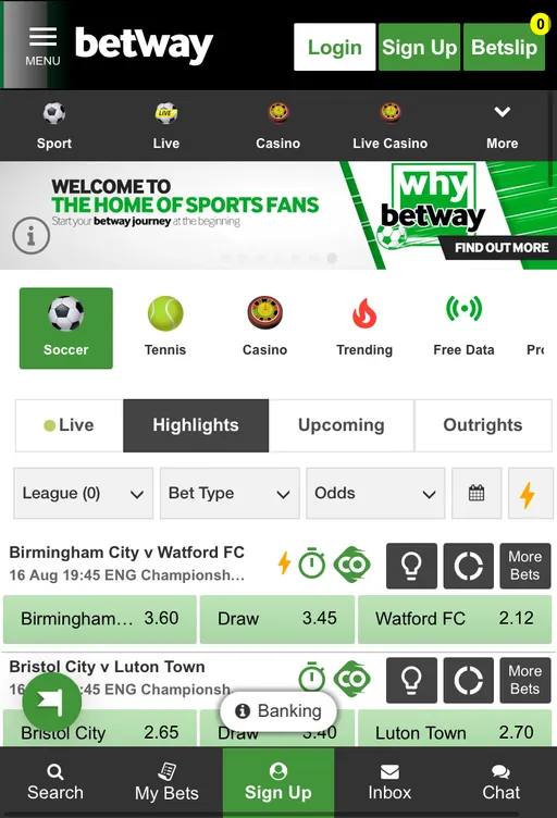 Undertaking the registration process of the Betway sportsbook via the mobile gizmos is no different from registering with the web version. Punters can decide whether to access the sportsbook using their native browser or from the downloaded and installed app depending on their preferences. In all, stable internet service is required and the normal registration process of locating the sign-up button and providing the necessary details as requested by the sportsbook is paramount.