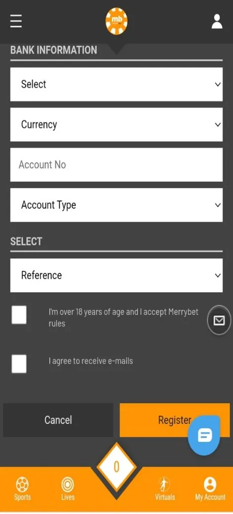Go to the signup page by opening the Merrybet website on your mobile device. Complete the form asking for basic information. The full name, gender, phone number, email address, birth date, and physical address must all be entered. Your bank's name, account number, and classification will also be needed.