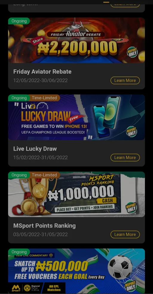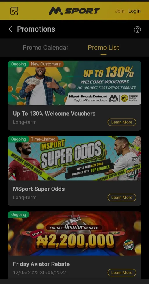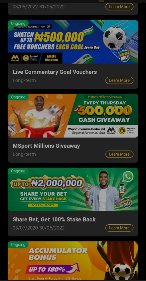 On their website and app, Msport has some of the most intriguing offers and promotions. The registration incentive is the most astounding of all of them. There are three different incentives and perks for registering.