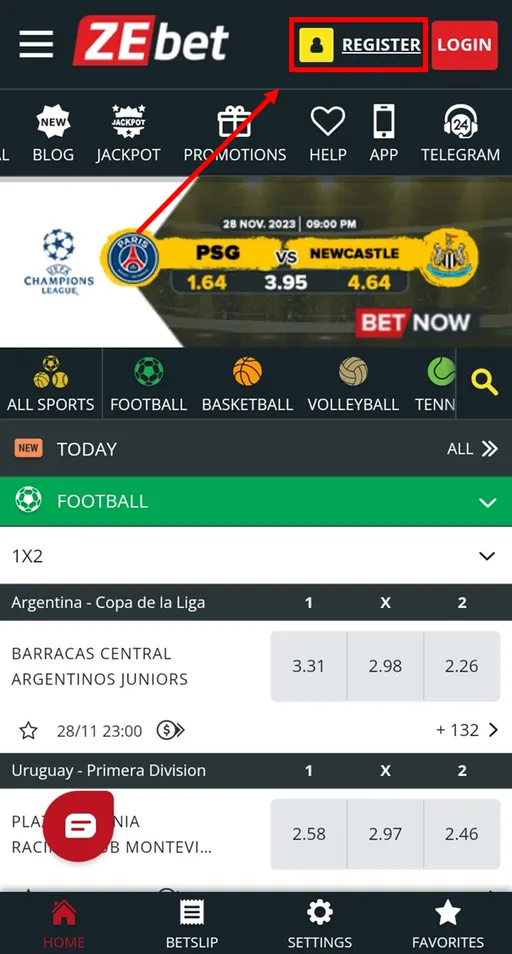 - Visit the Zebet website and tap the yellow REGISTER button;