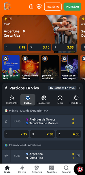- Elige el evento al que quieras apostar, puedes filtrar los resultados por país, liga, etc.;