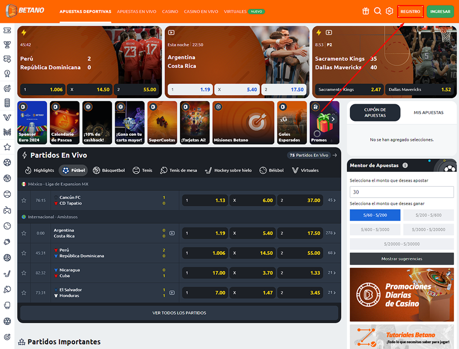 Hacer apuestas y subirlas es casi tan fácil como registrarse en Betano, sobre todo si ya lo has hecho antes en alguna otra casa de apuestas. De hecho, su plataforma incluso ofrece un Constructor de Apuestas para ayudar a los usuarios además de un panel de estadísticas históricas, el cual podemos consultar cuando queramos.