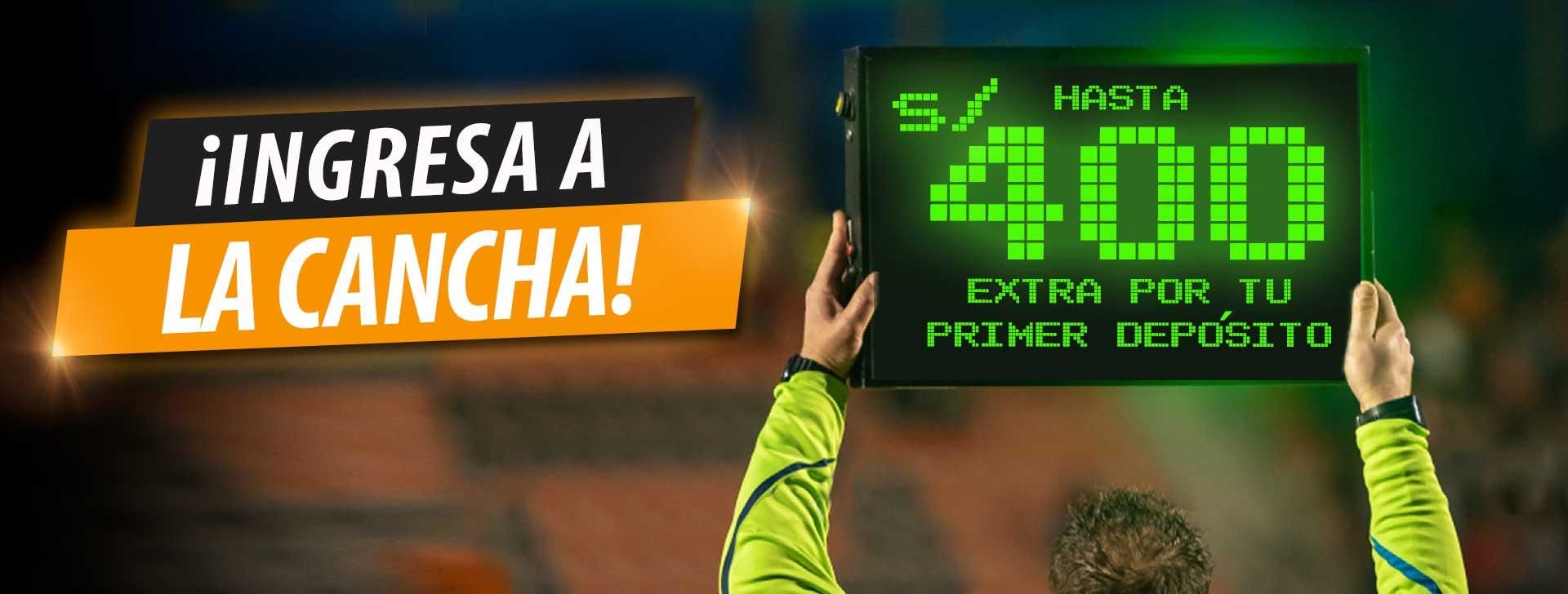 Esta bonificación estará a la vuelta de la esquina luego de haber culminado con el proceso de registro y haber creado una cuenta. Dicha bonificación otorga un 50% de retorno extra por tu primer depósito de al menos S/20 hasta un monto máximo de S/400 con un rollover de x5 con cuota mínima de 2.00.