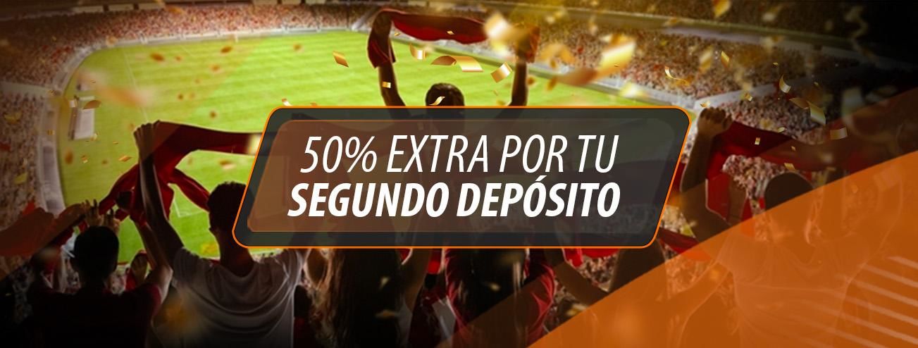 Dispondrás de la oportunidad de participar para obtener un 50% extra al realizar tu segundo depósito en el cual sacar provecho en las distintas secciones del sitio, incluyendo deportes o juegos de casino. Además, para obtener la recompensa, se requiere un mínimo de S/20 y rollover x7 con cuotas de 1.3 por apuesta por una recompensa máxima de S/200.