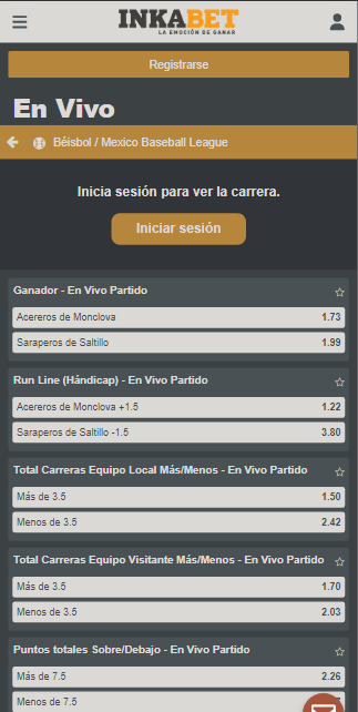 Vivir la emoción de apostar mientras disfrutas del partido sin importar el lugar donde te encuentres es posible en Inkabet, eventos en directo transmitidos con una alta calidad de vídeo estarán disponibles en el apartado con el nombre “Apuestas en Vivo” en la página principal del sitio los cuales puedes escoger para apostar y seguir cada momento del partido.
