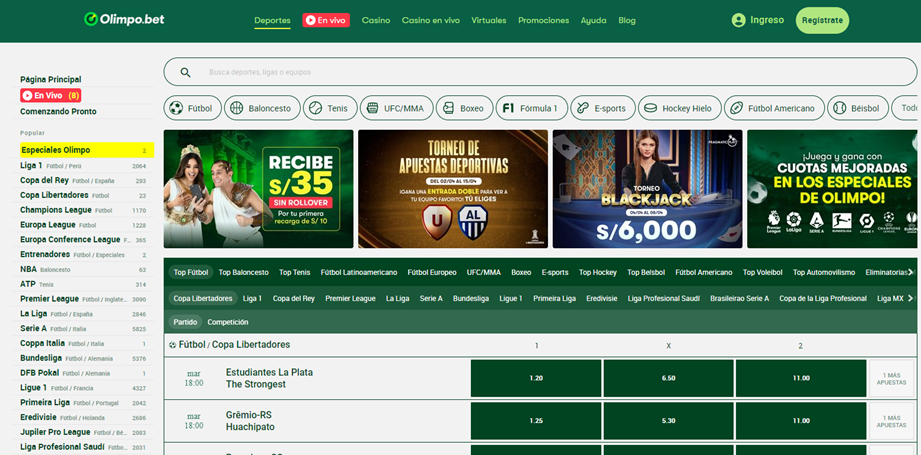 Página principal de Olimpo Bet