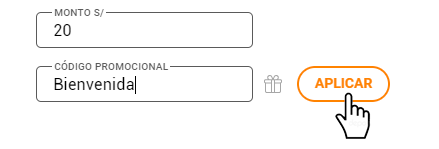 Luego de confirmado lo anterior, deberá ingresar a la sección “Cargar Saldo” que verás en el panel de usuario. Acto seguido ingresa el código promocional previo al depósito que vas a realizar y presiona el botón “APLICAR”.