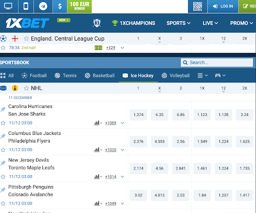 Hockey: If you love ice hockey, then the hockey section is for you. Here you can place bets on the famous NHL and other hockey matches across the globe.